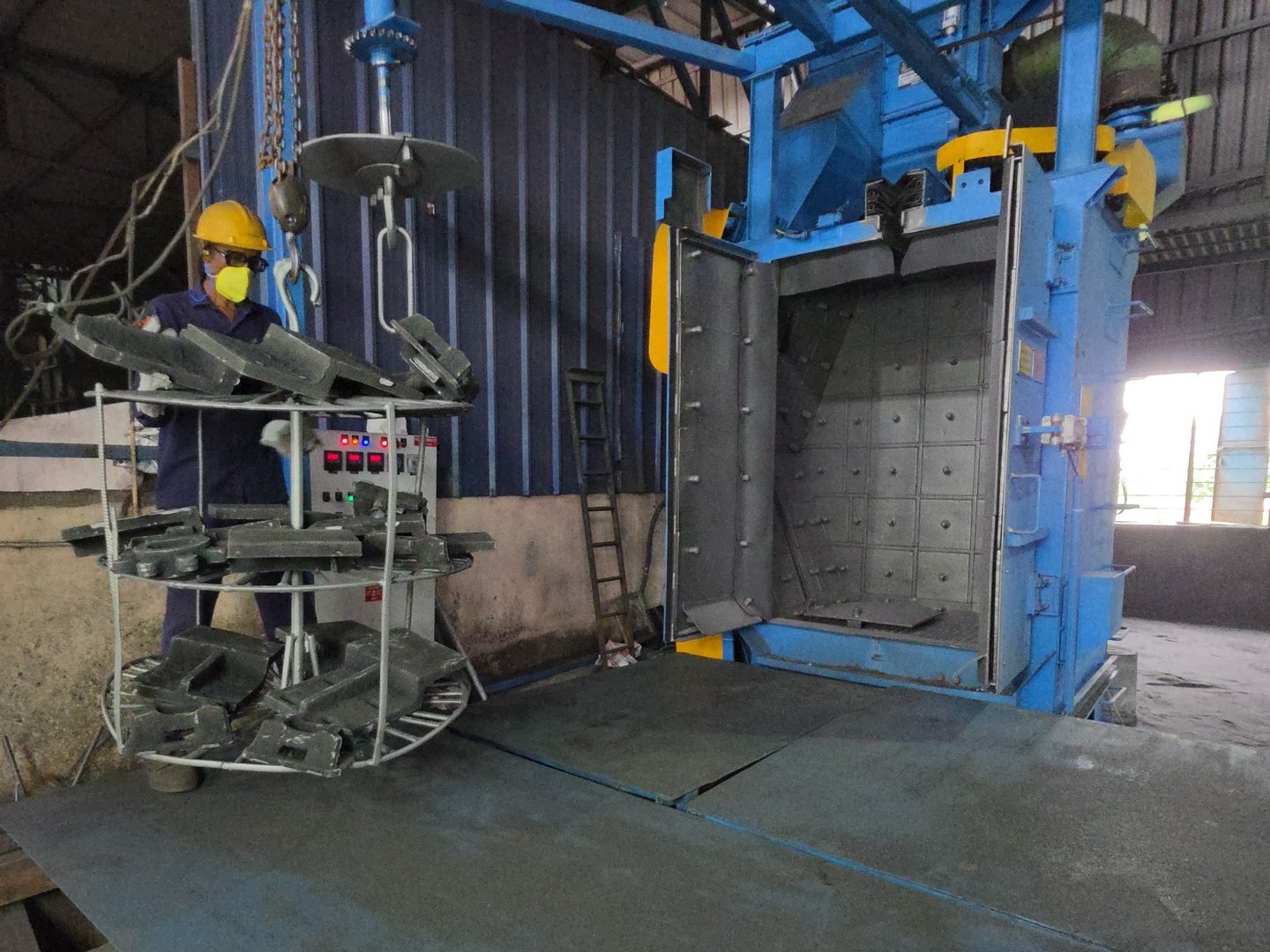 We utilize an 18” Twin Table Grinder for efficient grinding operations on medium to large castings, delivering high precision and consistency. Swing Frame Grinders are used for heavy-duty cleaning and shaping of complex or oversized parts, providing flexibility and speed in material removal. Our Hanger-Type Shot Blasting system ensures uniform surface cleaning and descaling, enhancing the final appearance and surface integrity of the castings.