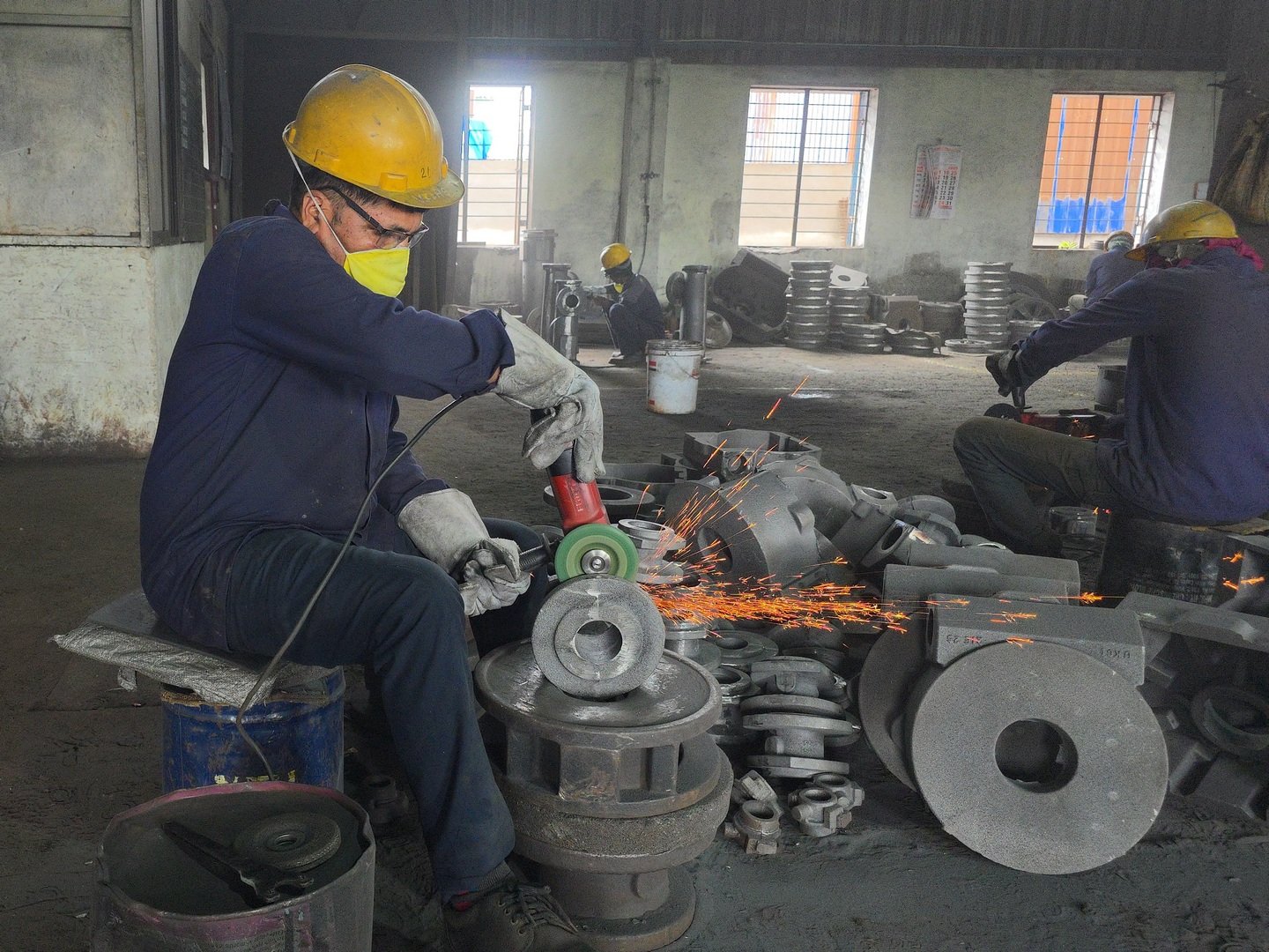 For detailed work and finishing of intricate areas, we employ Hand Grinders and Pencil Grinders, allowing fine control and precision. An industrial-grade air compressor supports all pneumatic tools, ensuring continuous and efficient operation throughout the fettling process.