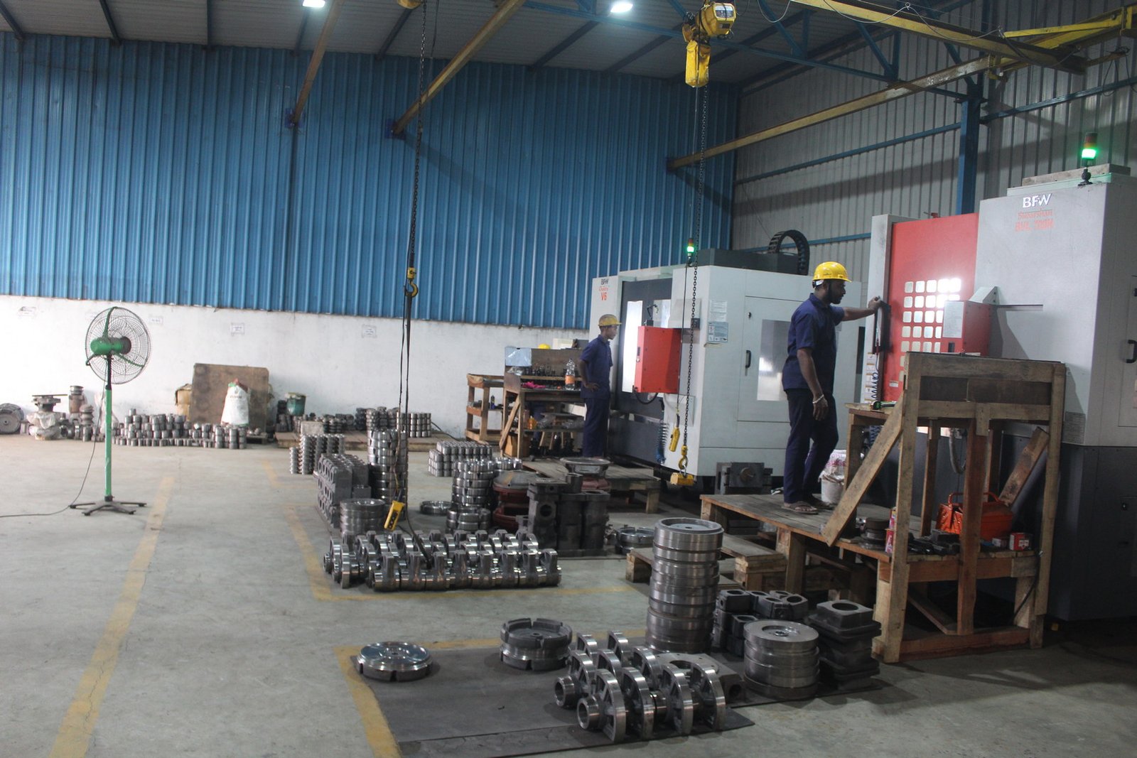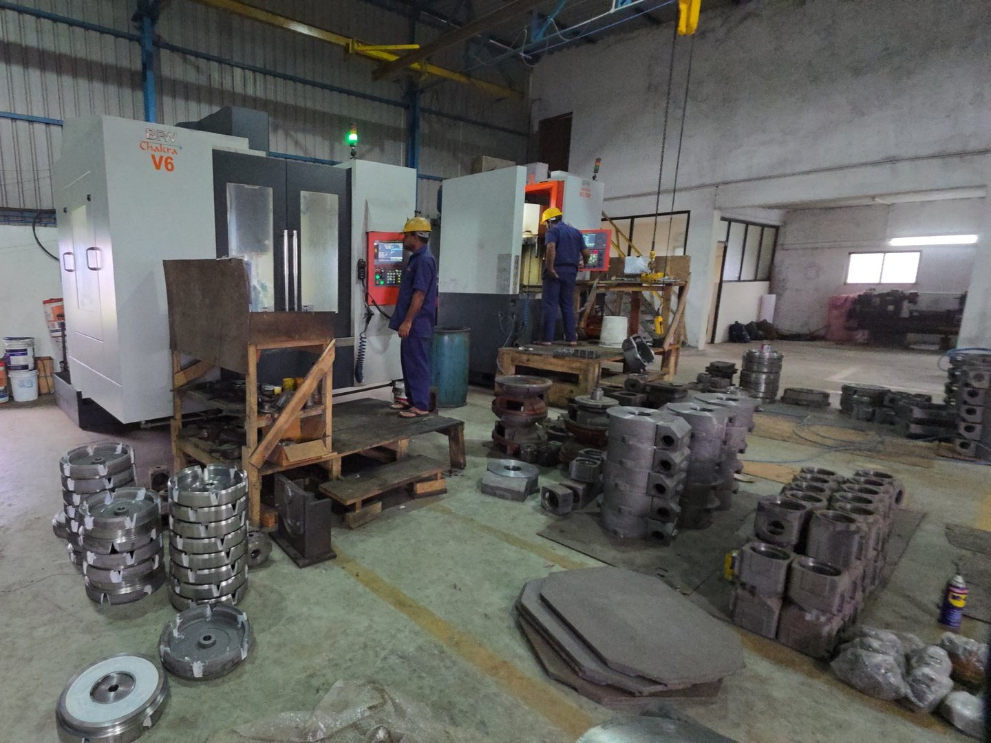 Our advanced machining capabilities are powered by a range of high-performance equipment. The CNC Turning Machine (Chuck Dia 400 mm, X-450 mm, Z-350 mm) enables accurate and repeatable turning operations for cylindrical components. The VMC – BFW Chakra (X-1200 mm, Y-600 mm, Z-600 mm) allows precision milling and drilling of complex geometries with high-speed, multi-axis capability. For large and heavy-duty parts, we utilize the VTL – BFW Sudarshan (Chuck Dia 500 mm, X-650 mm, Z-700 mm), ideal for vertical turning and boring tasks.